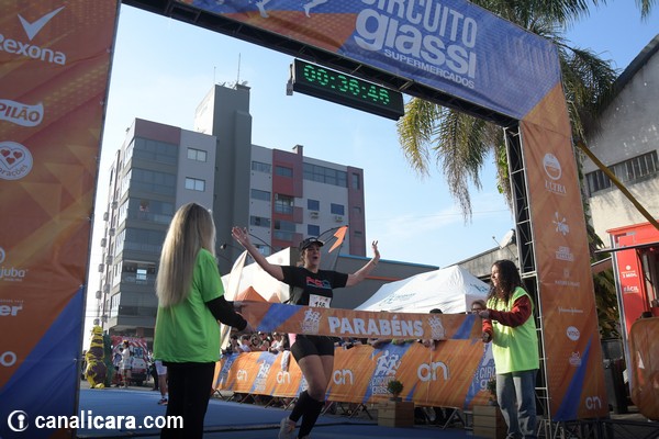 Diante da experiência em novo trajeto e também do ganho de competitividade, Jurandir Couto Júnior e Fabrícia Ester Stedille baixaram o tempo da prova principal do Circuito Giassi em Içara na manhã deste domingo, dia 24. Em 2019, Jurandir venceu a etapa na cidade com 33min7. Desta vez, cravou 32min40 em 10km de corrida. No feminino, por vez, a primeira a cruzar a linha de chegada marcou 37min14 e igualmente estabeleceu um novo tempo para o naipe, até então, também de Fabrícia, com 38min56.