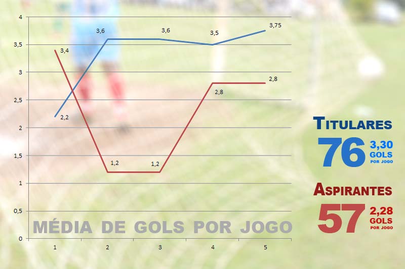 A melhor média foi construída pelos times titulares. Eles conseguiram 3,3 gols a cada jogo. A primeira semana figurou como a mais modesta, afinal, houve apenas 11 tentos. Na segunda e terceira rodada o desempenho chegou a 18 gols. Foram registrados também 14 gols na quarta rodada e 15 no encerramento da primeira fase.