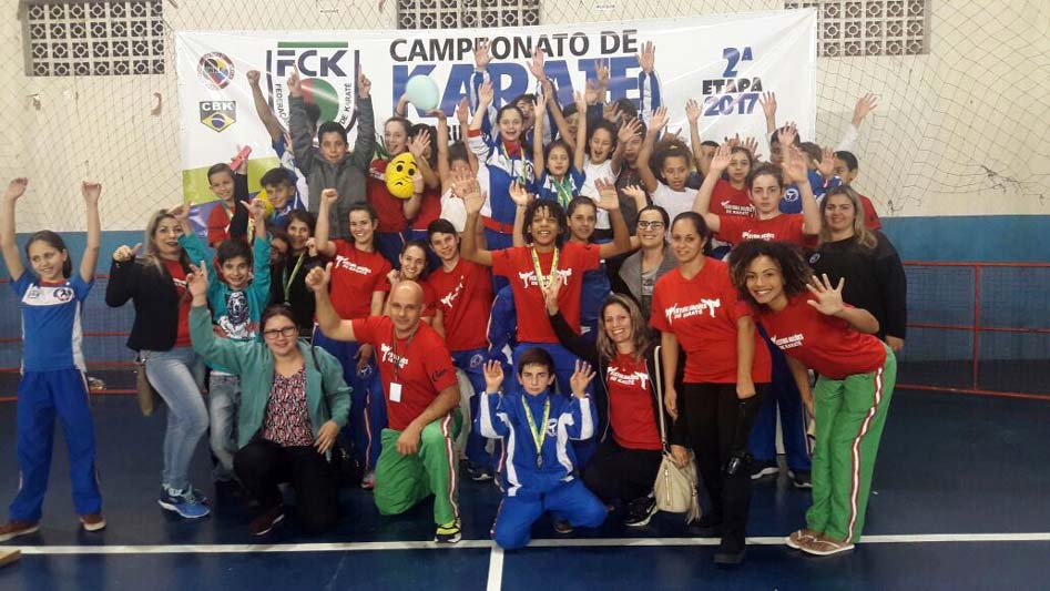 Caratecas de Içara comemoram troféu duplo em Joinville