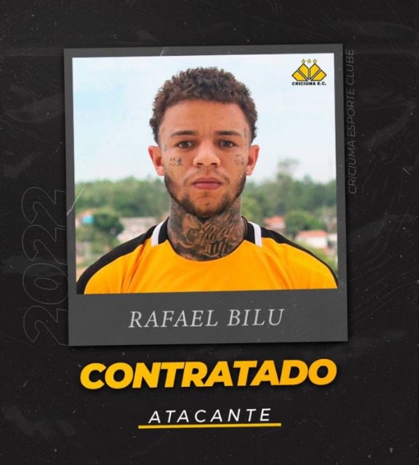 O Criciúma confirmou a contratação do atacante Rafael Bilu nesta quarta-feira, dia 2. O atleta já treina com o elenco carvoeiro desde o início da pré-temporada. Ele estava no Juventude e chega ao Tigre para compor o sistema ofensivo do técnico Cláudio Tencati.