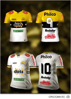 O Criciúma Esporte Clube apresentou o layout dos novos uniformes nesta quarta-feira, dia 8. A vestimenta tricolor vai ter inicialmente duas versões. A terceira opção será lançada somente após votação dos internautas. A nova camisa será usada já na reestreia na Série A. O duelo acontecerá no dia 26 de maio contra o Bahia no Estádio Heriberto Hülse.