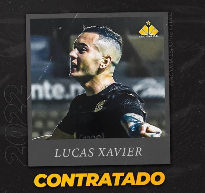 O Criciúma anunciou nesta quarta-feira, dia 22, mais uma contratação para o ataque da próxima temporada. O atacante Lucas Xavier, que estava no futebol mexicano, acertou contrato com o Tigre até o final de 2022 e se apresenta com o elenco no início de janeiro.