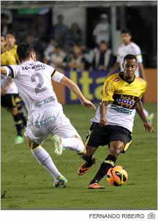 Daniel Carvalho cobrou falta e a bola passou perto da trave. Na jogada seguinte, o Santos abriu o placar. Após cobrança de escanteio, o lance sobrou para Thiago Ribeiro dar o destino certo no fundo do gol. Em desvantagem, o Tigre ainda teve a chance de empatar com João Vitor. Ele chutou colocado de fora da área e quase surpreendeu o goleiro Aranha. Ao final do primeiro tempo, o Santos ampliou então a vantagem com Willian José.