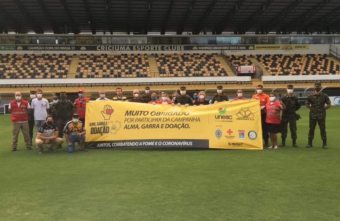 A campanha “Alma, Garra e Doação” oficializou nesta segunda-feira, dia 20, a contagem de alimentos arrecadados com um total de 26.472 quilos doados. A ação do Criciúma Esporte Clube, em parceria com a Unesc e o apoio do 28º GAC, Cruz Vermelha e Equipe Multi-Institucional, ocorreu entre os dias 6 e 17 de abril no pátio do estádio Heriberto Hülse, e teve como objetivo atender as famílias carentes e instituições da região neste momento de dificuldade com a pandemia do Covid-19.