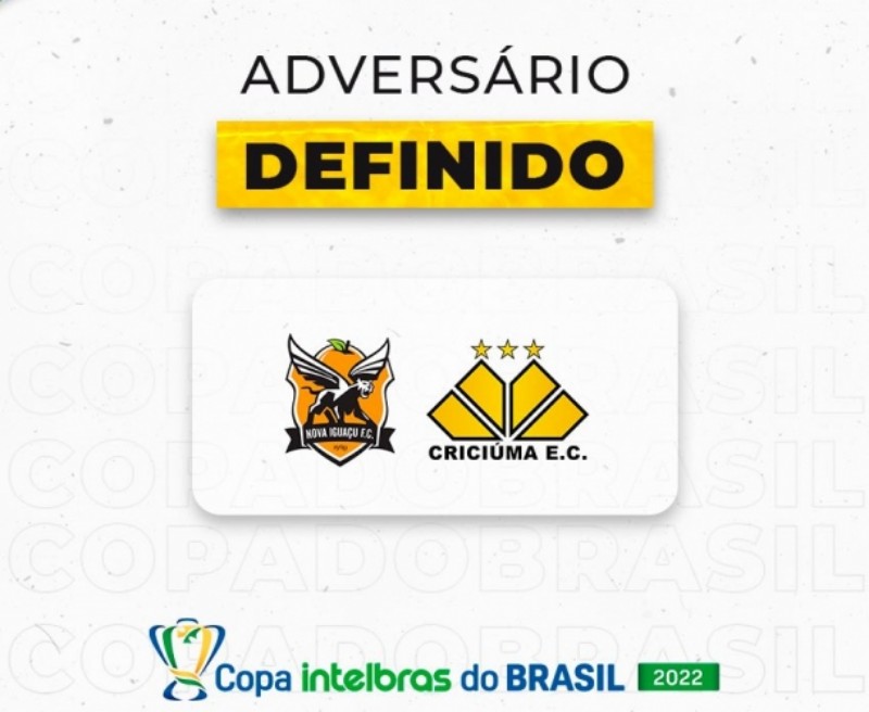 A Confederação Brasileira de Futebol (CBF) sorteou nesta segunda-feira, dia 17, na sede da entidade, os confrontos da primeira fase da Copa do Brasil 2022. O Criciúma enfrenta o Nova Iguaçu (RJ) na casa do adversário em jogo único com a vantagem do empate. As partidas da primeira fase ocorrem a partir do dia 23 de fevereiro.