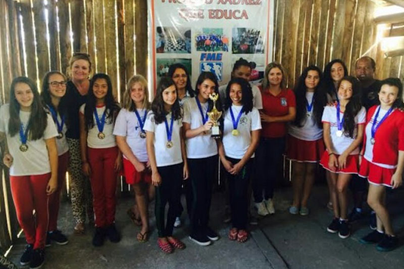 Já no xadrez a premiação foi individual e por equipe. Primeiro lugar para Ana Julia Librelato, EEB Maria da Gloria; 2º lugar Izadora Rocha, da mesma escola; e Juliana Klima, EMEF Paulo Rizzieri. Entre os meninos o campeão foi Vanderval Borges de Souza Junior da EMEF Maria Arlete, mesma escola do terceiro colocado, Mateus Reus. O segundo lugar ficou com o aluno do Quintino Rizzieri, Guilherme da Silva Mello.