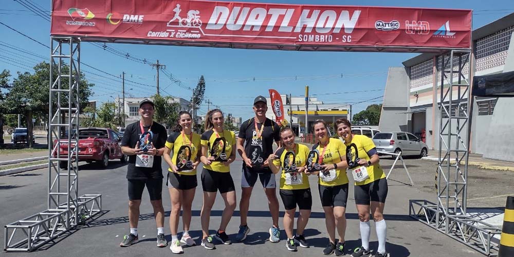 A equipe da Academia Pulsar, de Içara, faturou sete troféus em diferentes categorias da prova de Duathlon em Sombrio na manhã deste domingo, dia 14. Além de 7km de corrida e 15km de pedal, o time teve que enfrentar o sol intenso, mas a vontade de chegar ao pódio foi mais forte. A premiação teve Andreza Viana, Cleverson Guglielmi, Daniela Marcineiro, Douglas Minatto, Elonita Gomes, Josiane Campos e Silvia Fernandes.