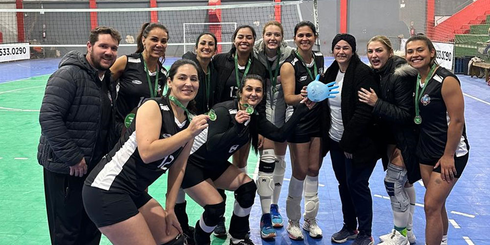 Equipe de vôlei de Içara comemora medalha em Sombrio
