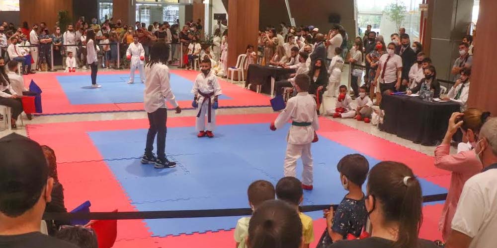 Quase 200 alunos dos nove núcleos da equipe da SR Mampituba, FME Içara, Unesc e Team Everaldo fizeram parte do Festival de Caratê no Nações Shopping neste último sábado, dia 6. A competição, totalmente gratuita aos atletas participantes, premiou os três melhores colocados em cada categoria do kumitê (luta) e kata (movimentos).