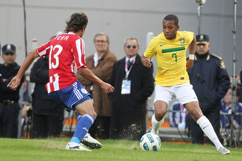 A seleção brasileira abriu o placar aos 14min do primeiro tempo. Depois de trocar passes com calma no campo de defesa, o Brasil girou a bola de um lado para o outro e achou espaço. Elias lançou para Daniel Alves, que avançou e cruzou na para Robinho mandar para o fundo do gol. Mas aos 24min da segunda etapa, após Thiago Silva colocar a mão na bola e o árbitro marcar pênalti para o Paraguai, Derlis González bateu forte, no canto direito de Jéfferson, sem chances para o goleiro e empatou a partida.