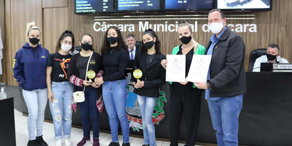 A Câmara Municipal de Içara entregou moções de aplausos para a presidente da Fundação Cultura de Içara, Mylena Cechinel da Silva Zanette, e ao coreógrafo, Lucas Fernandes, nesta segunda-feira, dia 26. As homenagens são pelos seis ouros, três pratas e uma medalha de bronze no Connection Dance Festival, nos dias 17 e 18 de julho, no Teatro Municipal de Itajaí.