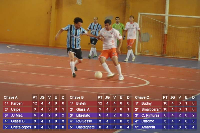 A partir de agora será mata-mata. Já na quinta-feira haverá o primeiro jogo das quartas de final. A segunda fase da competição de futsal iniciará com Farben x Librelato. Além disso, terá Bistek x Centro de Pinturas. Na segunda-feira será a vez de Budny x Usipe e Giassi A x Smalticeram. A composição reúne os dois melhores times de cada grupo e os dois melhores terceiros colocados das três chaves. As semifinais ficarão para o dia 24 enquanto a decisão será no dia 31.
