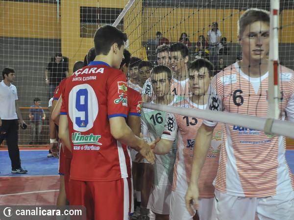 A primeira parcial foi aberta com ponto para Içara. Porém, a vantagem logo foi perdida. O placar virou com Maninho para 20x19 e a reviravolta se confirmou com 25x23. O segundo set, por vez, foi ainda mais disputado. Chegou a ter os times empatados sete vezes. Neste caso, a definição ocorreu com 26x24. O melhor desempenho foi então no terceiro set: 25x21.