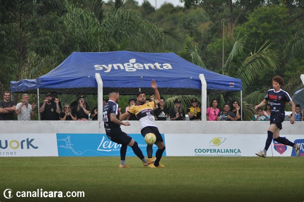 Aos 29 minutos, o time de Içara deu a resposta. Após jogada individual de Foguinho dentro da área, ele cruzou na medida para o camisa 19, Lucas, que cabeceou para o fundo do gol, fazendo o terceiro gol da partida: 3x2. Um minuto depois, o 6Caneco teve uma chance clara em que o atacante do time sombriense chutou fraco, em cima do goleiro. Aos 33 minutos, Maurício Raupp, já no banco de reservas, recebeu cartão vermelho por reclamação.