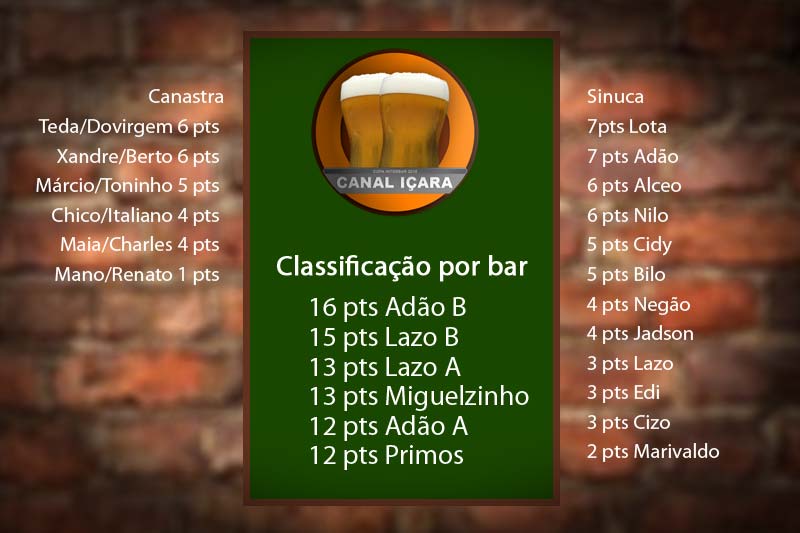 O Interbar vai repetir os jogos a partir desta semana. O returno da Taça Canal Içara começará com o clássico entre o Lazo A e Lazo B, além do Bar do Adão contra o Bar do Primos e do Miguelzinho diante do Adão B. Todos eles em duas modalidades: canastra e sinuca. O início da rodada acontecerá a partir das 19h45 desta quarta-feira, dia 12.