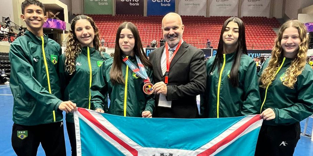Seis caratecas de Içara concluíram a participação no Campeonato Pan-Americano neste sábado, dia 30. E essa participação em Assunção, no Paraguai, rendeu medalha de bronze com Isabelle Mendes na categoria cadete (14 e 15 anos, -54kg). Junto à delegação brasileira, esteve presente também o coordenador técnico de Içara, Everaldo Pereira, além dos atletas Pietro Nunes, Emilly Pereira, Kayla Brígido, Isabela Passos e Renata Brandão.