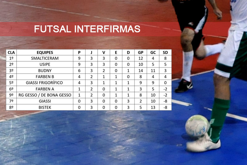 Jhoni Sartor é líder na artilharia do Futsal Interfirmas da Fundação Municipal de Esportes. Mas o jogador do Smalticeram tem fortes concorrentes. Na disputa aparece também Cristian e Paulo da Budny. Ambos com cinco gols. No caso da Usipe, há também Elton Luiz com quatro.