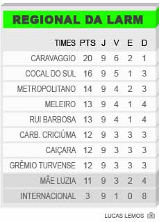 Também em igualdade pela ausência de gols, acabou o Mãe Luzia e o Carbonífera Criciúma. Pela nona rodada, o destaque foi o Cocal do Sul. O time goleou o Internacional por 12 a 0. Ainda nesta mesma tarde, o Caravaggio venceu o Metropolitano por 3 a 2. E, o Grêmio Turvense marcou 2 a 1 sobre o Meleiro.