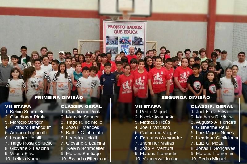 No caso de Claudionor, a campanha deste final de semana encerrou como vice da sétima etapa. Já a terceira colocação foi de Marcelo Senger. No Sub-14, o destaque foi atribuído a Samuel Kamer (Forquilhinha). O complemento do pódio teve Jonas Inácio (Içara) e Felipe Fortuna (Morro da Fumaça). Já o Sub-12 foi dominado pelo elenco da casa. Neste caso, com o título para Matheus Quarezemin. A prata e o bronze ficaram, respectivamente, para Maria Clara Senger e Gisele Leacina.