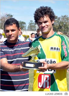 Antes mesmo do último confronto do Campeonato Içarense, os artilheiros já estavam sacramentados. O cerimonial realizado no início da tarde deste domingo, dia 19, serviu apenas para oficializar. No Titular, Leandro Vieira recebeu o troféu de goleador. Atleta do Barão do Rio Branco, ele marcou nove vezes. Este índice garantiu inclusive dois gols de vantagem sobre o finalista Everaldo, do União da Praia. Já no Aspirante, Anderson Antônio (foto), do Vila Nova, levou o título pela participação certeira em 12 lances em toda a competição.