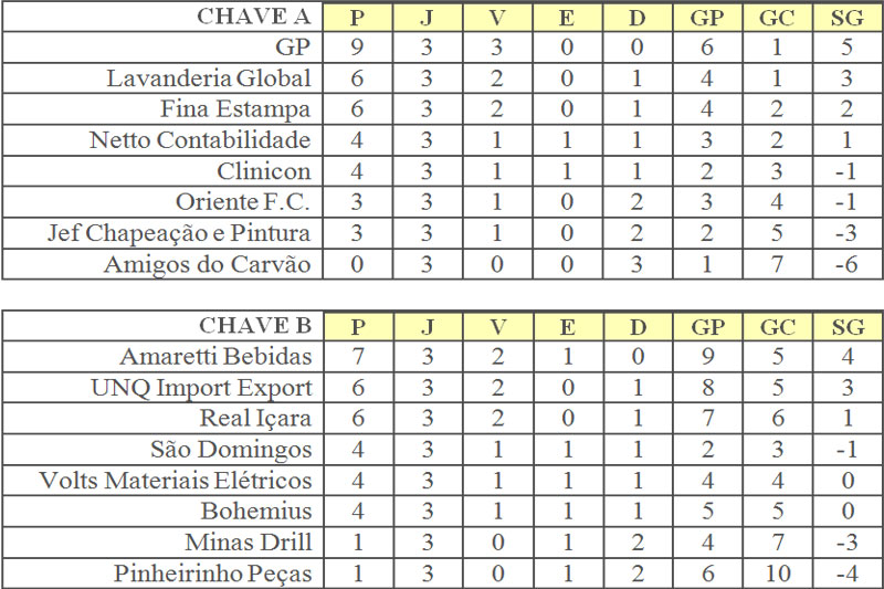 A sequência iniciará com GP x Fina Estampa às 14h30. Terá ainda São Domingos x Pinheirinho, Volts x Real Içara, o duelo de líderes e o confronto de Lavanderia Global x Netto Contabilidade. A partir das 9h de domingo continuará com Oriente x Amigos do Carvão, Jef Chapeação e Pintura x Clinicon, além de Minas Drill x Bohemius.