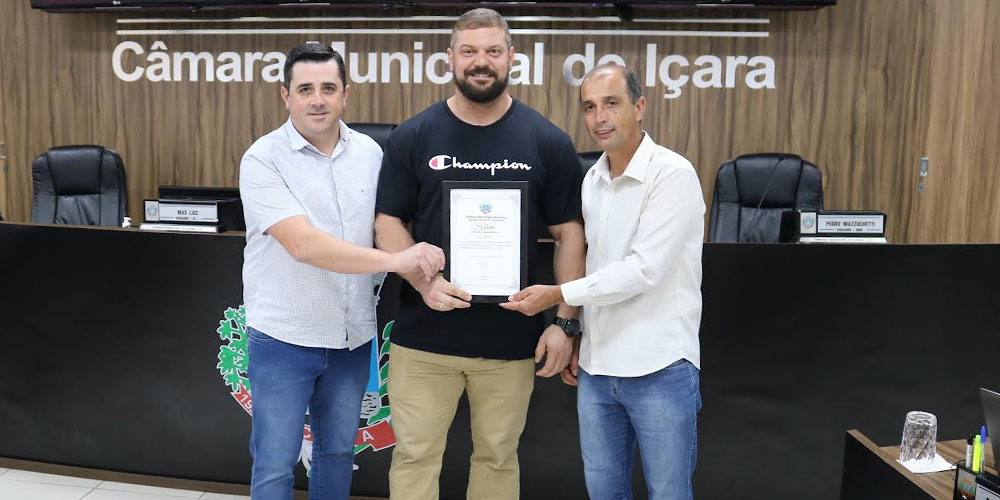 A conquista dupla da mealha de prata por Lucas Colonetti no Mundial de Powerlifting, em Budapeste, na Hungria, foi comemorada na Câmara Municipal de Içara nesta segunda-feira, dia 23. O desempenho na categoria de 110kg a 125kg resultou também uma moção de congratulações. “É o reconhecimento de todo empenho e dedicação desse competidor, representando com excelência o município de Içara”, comenta o propositor, Jairo Manoel da Silveira (PSD). O presidente do Legislativo, Max Luiz (PL), acompanhou a entrega.
