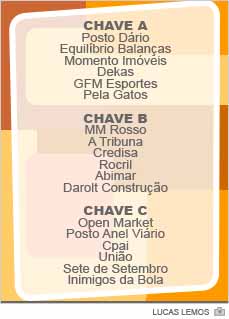 Na quarta-feira a primeira rodada terá ainda MM Rosso x Duda Produções, Pizzarela x Rocril e Multicópias x Darolt. Já na quinta, a disputa pela Taça Pierini começará também com Open Market x Posto Anel Viário, Cpai x União e Nossa Senhora da Salete x Farben.