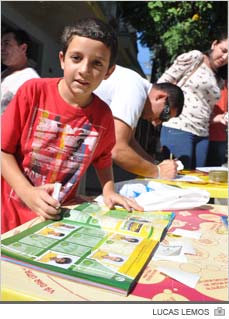 "É o meu segundo álbum. O primeiro eu completei em 2010 junto com o meu pai", coloca o pequeno Gustavo Rosa, de 9 anos. "Esta também é a segunda Copa que eu faço a coleção. Meu pai sempre me ajuda", completa também, acompanhado do pai Peterson, o garoto Kauã Silvestre Plássido, de 8 anos.