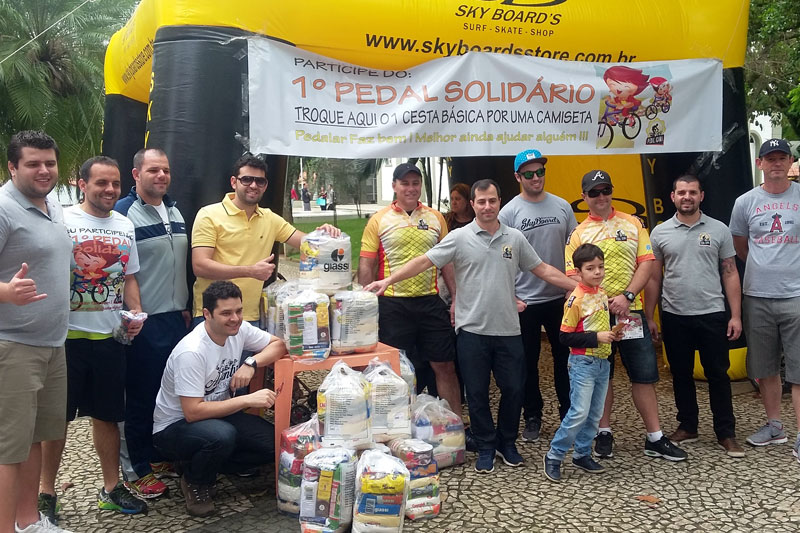 Vinte e uma cestas básicas foram doadas para o 1º Pedal Solidário na manhã deste sábado, dia 5. “O volume nos surpreendeu e na próxima semana vamos voltar à praça da matriz para continuar a arrecadação”, coloca Adroaldo Laitano, o Dinho. “Cada cesta serve de inscrição e dá direito a uma camiseta do evento. O investimento solidário é de aproximadamente R$ 35”, completa também um dos organizadores, Fernando Milak.