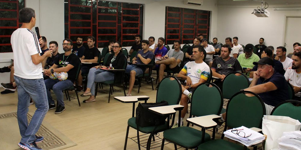Diretores de esporte e professores dos municípios que integram o Projeto Anjos do Futsal forem reunidos na Unesc na tarde desta quarta-feira, dia 28. No encontro, que ocorreu na Unesc, foram entregues as bolas e os coletes para treinos nos núcleos e todos conheceram o Plano de Atividades de 2024. Neste ano, a iniciativa terá 27 núcleos em 23 municípios com a participação de 1,4 mil garotos de 10 a 14 anos.