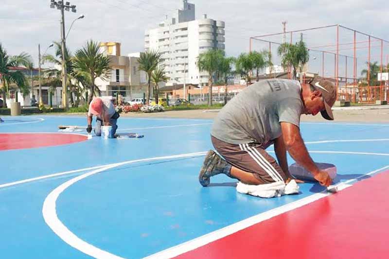 As quadras da Praça da Juventude Fernando Pacheco receberam nova pintura nesta semana. A composição das linhas com o apoio das Tintas Farben faz parte do projeto de revitalização do espaço público. Desde o início do mês a Secretaria Municipal de Obras realizou também o corte de grama, recuperação de calçadas, além da colocação das novas cestas e aros para a prática de basquete.