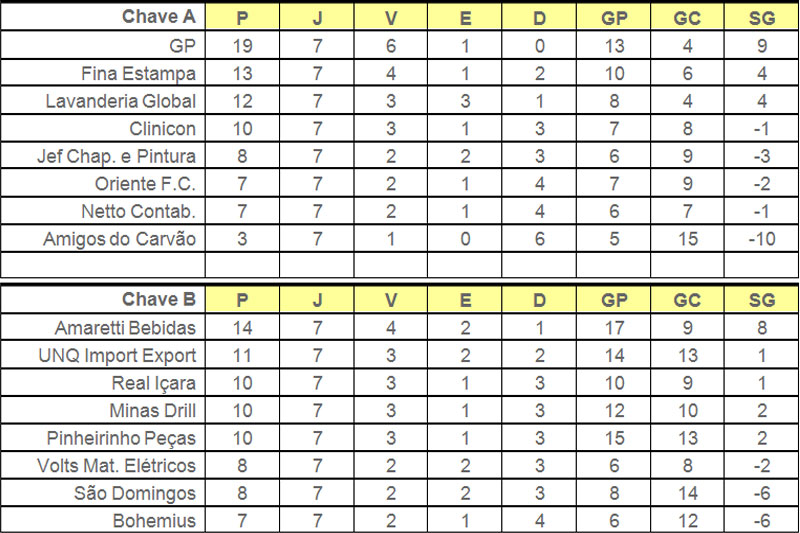 Também pela manhã, o Netto Contabilidade venceu o Amigos do Carvão com dois gols de Rafael. Os adversários reduziram a vantagem com Saimon. Todavia, nenhum deles se classificou. Já o Fina Estampa derrotou o Clinicon através de Gabriel, Rudnei e Fernando. O tento de honra ficou para André Scotti.