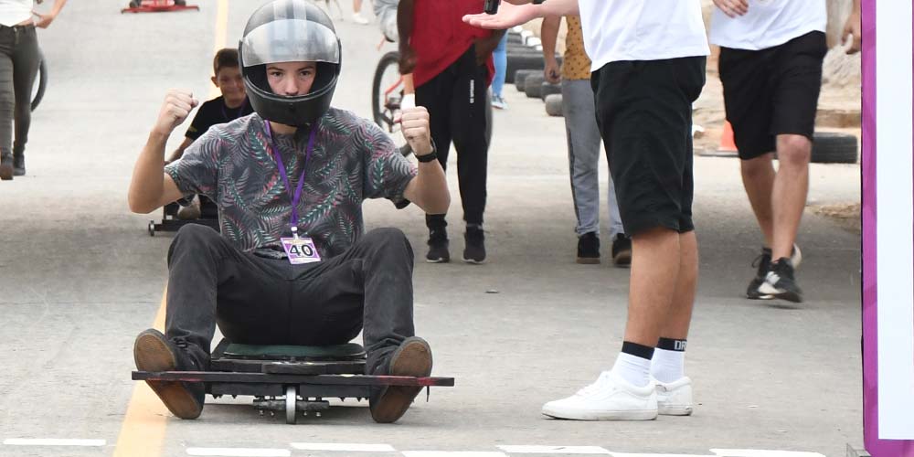 Após quase 5h de disputas ladeira abaixo, Saimon Maciel Martinho foi consagrado vencedor do Grande Prêmio de Carretilha de Içara na tarde deste sábado, dia 2. Aos 16 anos, ele chegou a idade limite para participar da competição com troféus conquistados em todas as edições. O retrospecto conta também com ouro em 2018 e uma prata em 2019. “Já estava com saudades de sentir essa adrenalina”, garante o jovem.