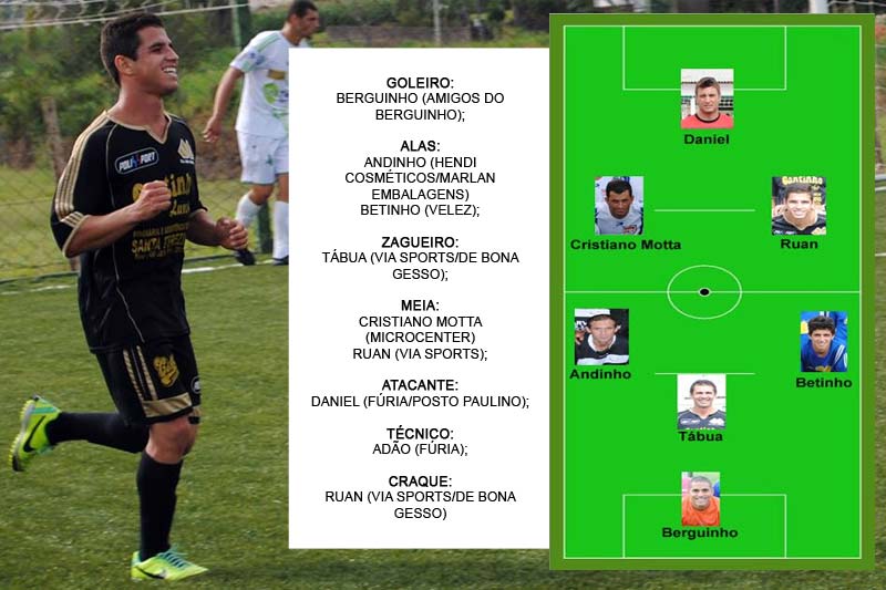 Tábua também carimbou mais uma página como o melhor zagueiro com o Via Sports. Para a seleção foram eleitos ainda o goleiro Berguinho, do Amigos do Berguinho; os alas Andinho, do Hendi Cosméticos, e Betinho, do Velez; meia Cristiano Motta, do Microcenter; e o atacante Daniel, do Fúria/Posto Paulino. Na função de técnico, a escolha foi por Adão, do Fúria.