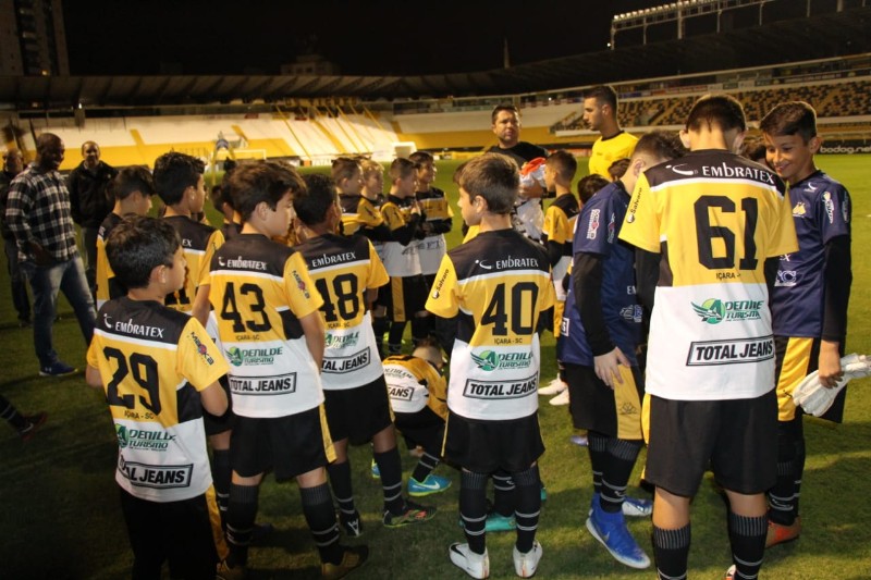Os atletas da modalidade de futebol, integrantes da FME de Içara foram convidados a fazer o jogo preliminar do Criciúma, que enfrentou a Ponte Preta na noite desta terça-feira, dia 3, no estádio Heriberto Hülse. Estiveram presentes no estádio os atletas das categorias Sub-12 e Sub-14 e o coletivo foi realizado entre os próprios atletas de Içara.