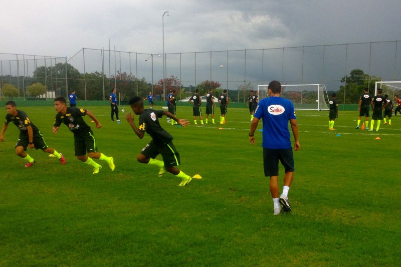Depois de um trabalho físico sem bola pela manhã, os jogadores da Seleção Brasileira Sub-17 tiveram o primeiro contato com a "redonda" na tarde desta terça-feira. A equipe está em Itu, no Spa Sports, se preparando para o Sul-Americano do Paraguai.