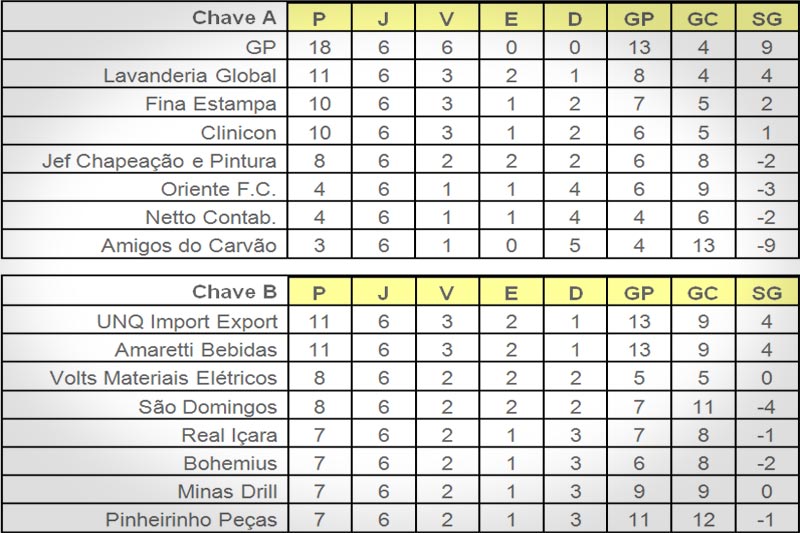 O Suíço da Zona Sul conheceu mais dois classificados na sexta e penúltima rodada da primeira fase. O carimbo no passaporte ficou para o UNQ Import Export e Amaretti Bebidas. Também já tem vaga garantida no mata-mata o único plantel ainda invicto na competição, o GP. A sexta vitória ocorreu na manhã deste domingo, dia 25. O GP anotou com Jean Vitorassi e André e o desconto do Netto Contabilidade ficou para Paulo César.
