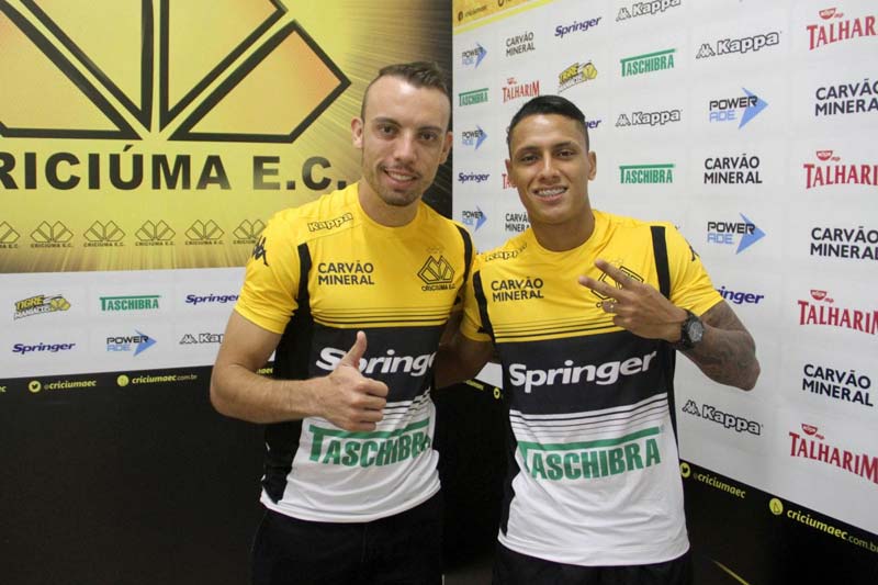 O Criciúma apresentou de forma oficial mais dois jogadores na manhã desta terça-feira, dia 10. Dudu chega por empréstimo ao Tigre até o fim do ano. Formado no Coritiba (PR), ele acumula passagens por Oeste (SP), Rio Branco (PR) e Chapecoense (SC). Já Paulo Sérgio tem uma história de 14 anos no Flamengo, desde as categorias de base até chegar ao profissional. Depois passou por Figueirense (SC), Estoril, de Portugal, Náutico (PR), Operário (PR), Paraná (PR), Avaí (SC) e recentemente estava no Dubai Club, time dos Emirados Árabes.