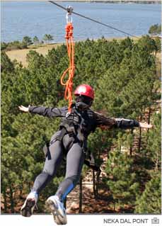 A cada final de semana ensolarado cresce a quantidade de aventureiros no Park Lago Azul. É que além da estrutura para os banhistas, há também uma tirolesa com 30 metros de altura e 300 metros de cabo de aço. Nos dias de maior movimento, o equipamento chega a ser utilizado até 300 vezes.
