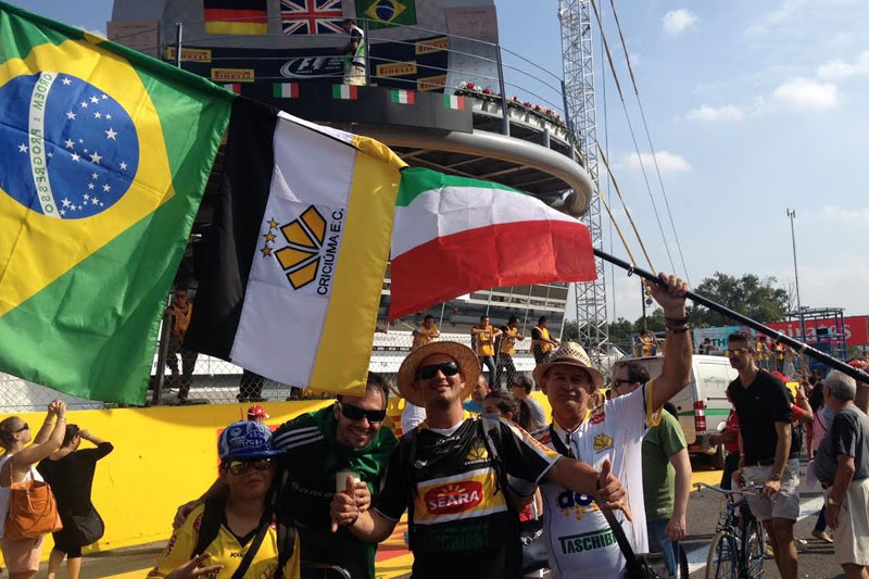 A comemoração de Filipe Massa em Verona ocorreu com uma bandeira do Brasil e do Criciúma Esporte Clube tremulando junto com a flâmula italiana neste último domingo, dia 7. O piloto brasileiro cumpriu a prova na Itália com o terceiro melhor tempo. Foi o primeiro pódio deste ano do piloto da Willians. Ficou atrás somente de Nico Rosberg e do campeão Lewis Hamilton. “Comprei a bandeira do Tigre só para levar na Fórmula 1 quando estive no Brasil em janeiro”, relata o içarense Rafael Pacheco Bosquette.