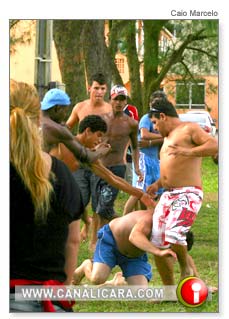 Uma briga iniciada na orla do Balneário Rincão fez o confronto entre o Vila Nova e o Trilho ser paralisado por minutos na tarde deste domingo, dia 24. Sobrou até para um dos assistentes da arbitragem que, ao perceber o conflito, correu. Já os brigões levaram a confusão para fora das areias. Os socos e pontapés acabaram na Arena de Shows do Balneário Rincão com o envolvimento também de atletas que competem no Praião 2009/2010. A polícia chegou minutos depois. Contudo, sem condição de identificar os autores já que o serviço de monitoramento por câmeras, prometido antes da primeira rodada da competição, nunca foi utilizado.