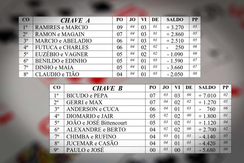 O Campeonato de Canastra em Dupla do Clube dos 50 tem ainda três equipes invictas. Todas integrantes do Grupo B. Bicudo e Pepa tiveram a terceira vitória com 2x1 contra Anderson e Cuca. Diomário e Jair alcançaram cinco pontos com 3x0 em cima de Paulo e José. Já Alexandre e Berto conseguiram chegar a quatro pontos com 2x1 contra Jucemar e Casão.