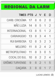 Meleiro, Metropolitano, Cocal do Sul e Grêmio Turvense são os times que poderão ocupar as últimas três vagas na Primeira Divisão do Regional da Liga Atlética da Região Mineira (Larm). A definição dos times classificados caberá aos duelos da última rodada da primeira fase. As partidas serão no próximo sábado, dia 15.