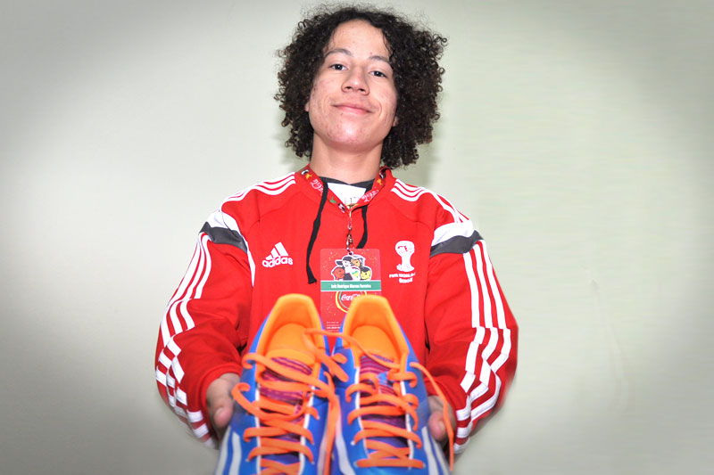 “Entrar em campo com a bandeira foi a melhor emoção que já tive, ainda mais por ter sido escolhido como capitão. Ensaiamos tudo às 5h. E depois que chegamos ao Beira-Rio, saímos apenas ao final do jogo”, relata. A espera pelo momento de entrar no gramado às 13h ocorreu em ambientes preparados para amenizar toda a ansiedade. Tinha alimentação e jogos. “Fiz inclusive dupla com o Fuleco no pebolim. Mas a mão do mascote não ajudou muito”, relembra ao mostrar a foto registrada com a própria câmera.