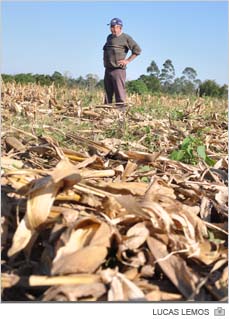 Devido a interferência da máquina, as evidências do círculo são visíveis apenas com a comparação dos caules. As plantas foram quebradas próximas da terra em quase 200 metros quadrados dos quatro hectares no fundo da casa do aposentado de 66 anos. "A colheitadeira foi passada na última sexta-feira, dia 14. Foi assim que descobrimos o sinal no meio da lavoura", coloca o arrendatário da terra, Eraldo Bernadino.