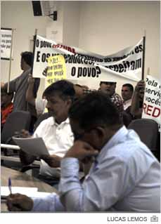 "O povo ainda respeita os vereadores. E os vereadores, respeitam o povo?", "Pela qualidade do serviço prestado, vocês merecem redução", "Vão pedir aumento pra Mina ou para a Santec, não para o povo", estamparam em faixas alguns jovens. "Juntamos os amigos que jogam pôquer nas segundas-feiras para este protesto. Deixamos a brincadeira de lado porque não gostamos de rasgar dinheiro", coloca Marcelo Goularti.