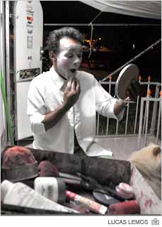 Por volta das 20h Carlos Antônio Rodrigues se recolhe ao camarim. E a cada maquiagem que acrescenta, deixa a própria personalidade de lado para incorporar o palhaço Maxuxinho. A mutação faz parte das preparações para o espetáculo do Circo Fantástico. Aos 42 anos, sendo 20 junto com a trupe, o cearense só deixa de atuar quando chega a hora de trocar de cidade.