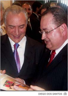 O primeiro exemplar entregue nesta quarta-feira, dia 17, foi destinado ao futuro vice-presidente, Michel Temer (PMDB). “Sou o primeiro prefeito de Santa Catarina a ser recebido por ele após as eleições”, vangloria-se. Outras unidades ainda serão distribuídas na passagem pelo Distrito Federal da comitiva, com integrantes do Executivo e Legislativo da cidade, até sábado, dia 20. A meta é inclusive entregar para Dilma Rousseff (PT), com quem Gentil aparece na capa.