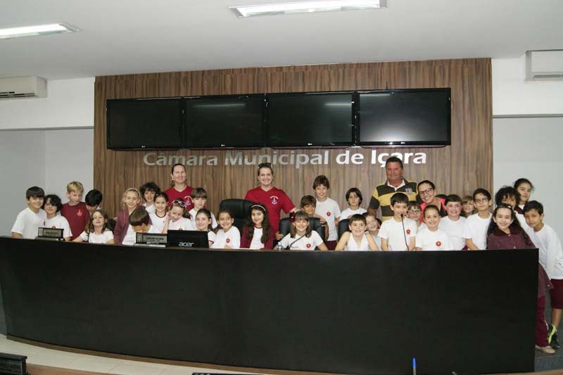 Os alunos do terceiro ano do ensino fundamental do Colégio Cristo Rei visitaram os poderes municipais nesta sexta-feira, dia 26. Na Prefeitura de Içara eles foram recebidos pelo chefe de gabinete Tiago Aguiar Marcolino. Já na Câmara Municipal a recepção foi realizada pelo presidente Ladelino Calegari. “É importante a visita dos alunos no Legislativo, assim ficam conhecendo como é o trabalho dos vereadores”, coloca. A saída em campo faz parte do projeto "Conhecer a História do Município e os Três Poderes".