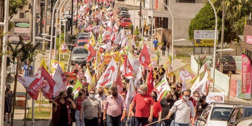 A coligação Içara Não Para percorreu algumas das principais ruas do centro da cidade com um bandeiraço neste sábado, dia 7. Arnaldo Lodetti Júnior (MDB) e o vice Valdelir Da Rolt (PSDB) foram acompanhados também pelos candidatos ao Legislativo e a militância na divulgação do plano de governo construído com lideranças comunitárias, funcionários públicos, empresários, líderes religiosos, profissionais liberais e representantes de associações.